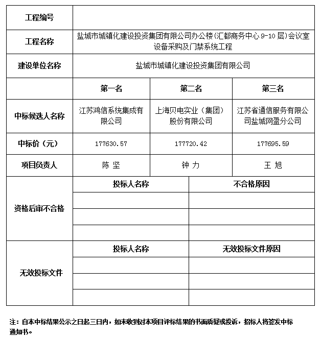 盐都区工程项目中标结果公示表
