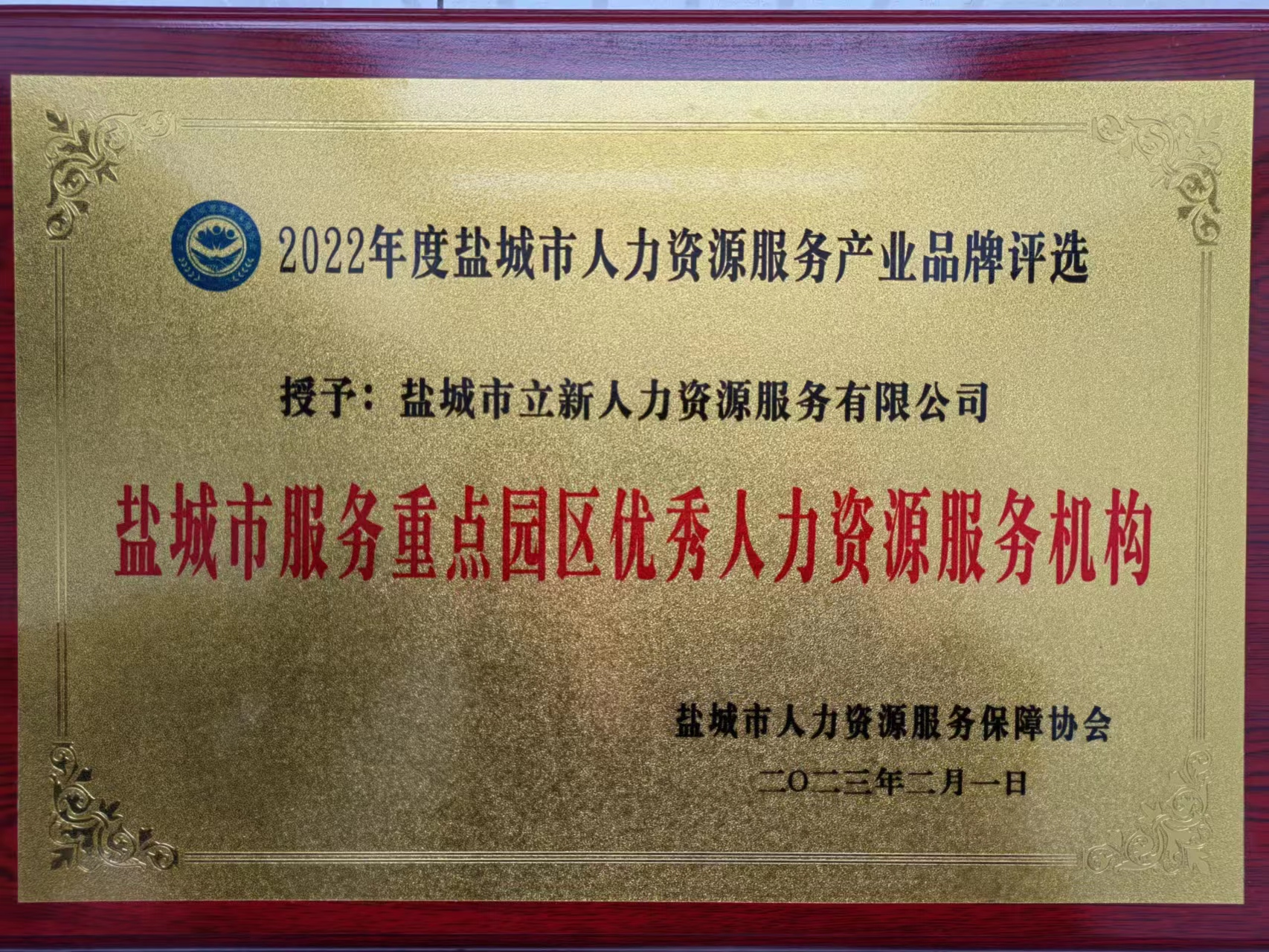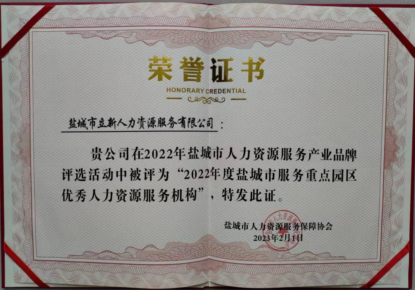 踔厉奋发 笃行不殆――立新人力荣获2022年度盐球探真人网站重点园区优秀人力资源服务机构称号