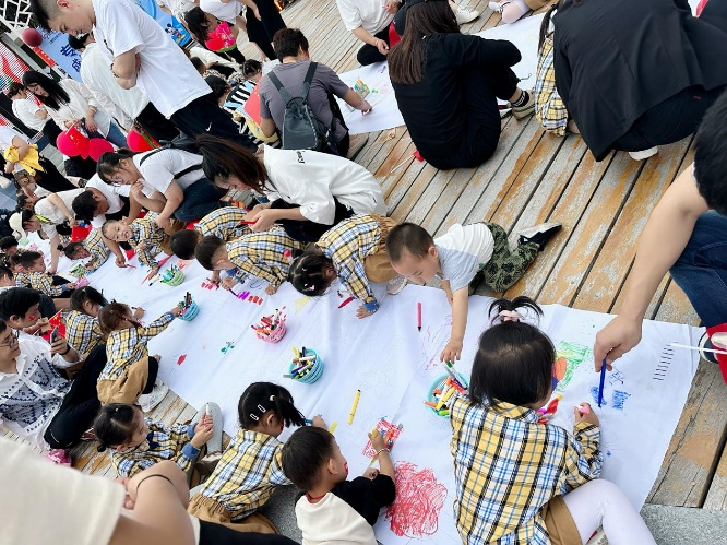 秋风起,月渐圆;红旗飘扬,爱国情深。在老师的带领下,孩子们挥舞着红旗歌唱着对祖国妈妈的爱;在爸爸妈妈的陪同下,孩子们用充满想象的画笔在长卷上绘出五彩画卷,并出色地完成了自己的花灯。此次活动既让孩子们在快乐节日氛围里感受中国传统文化的魅力,又